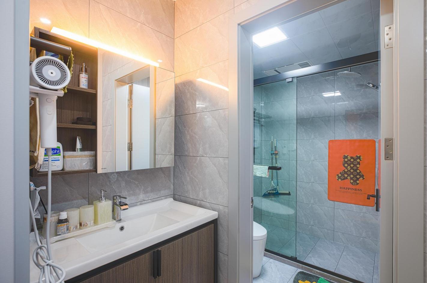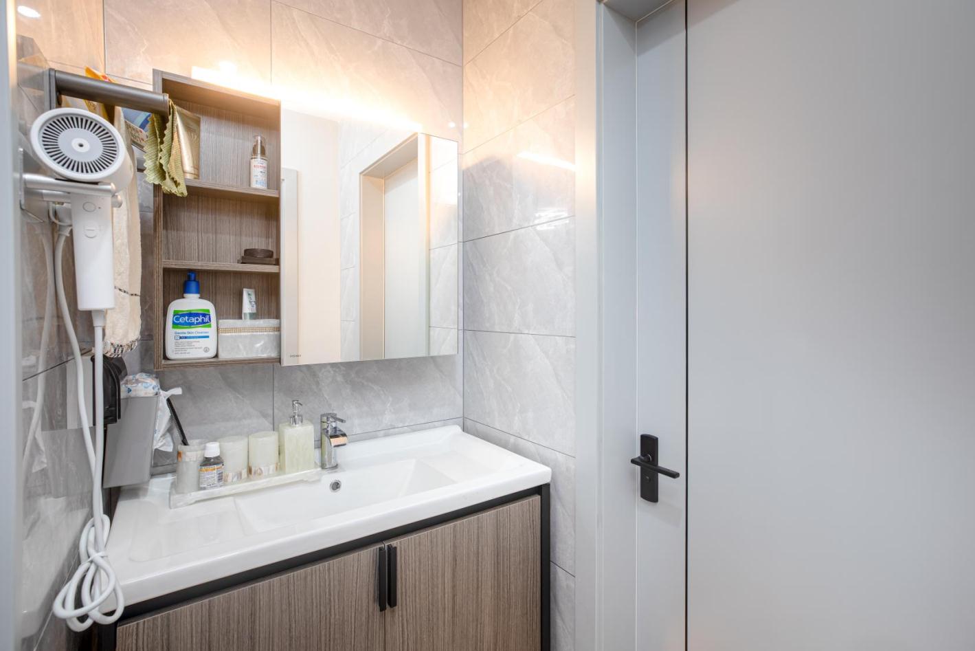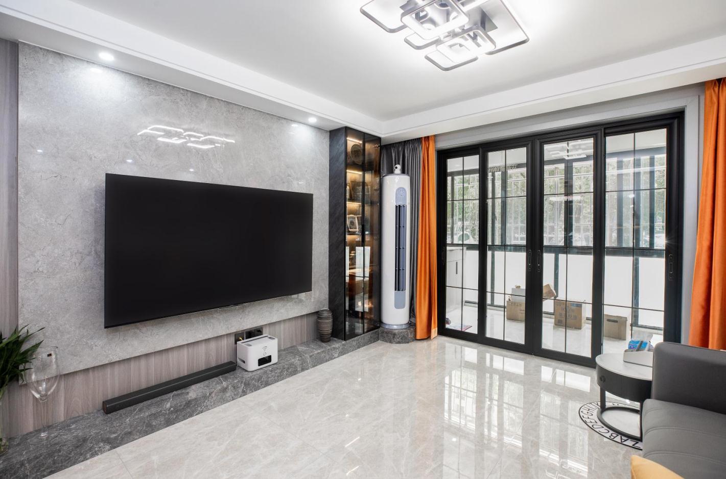 除卻隨處可見的采光設計,可以讓自然光不受限制地引入,燈光也是空間里不可或缺的部分。 挑空處精心設置的吊燈,猶如皎潔的明月,含蓄、巧妙地為空間褪去冰冷外衣